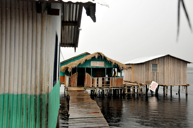 Tüm evleri, yapıları, geçit ve köprüleri bambulardan yapmışlar. Çok sağlam, sert, dayanıklı malzeme. Üstelik Gana’da yerde gökte yetişiyor, şık bile duruyor. Minik minik, içinde yalnızca çift kişilik yatak ve bir dolaba yer bulabilen küçücük köy evleri var suyun üstünde. Onun dışında aklınıza ne gelirse var; bar’dan tutun da, okula kadar.