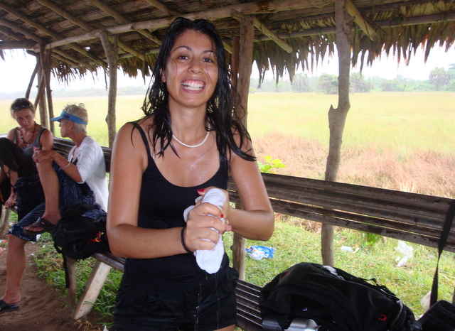 Annemin kuru mevsime inat, geldiği an itibariyle görmeyi dilediği sağanak yağmur, bizi “üstündeyken kıpırdama yasağı bulunan” o kanonun üzerinde yakaladı. Geri dönüş yolculuğu için kanoya yerleştiğimizde yağmur yalnızca çiseliyordu, ilk kürek darbesiyle hızlandı, sonra sanırsınız ki muson yağmuruna döndü. Bakın yol 1 saat, kıpırdamadan tam 1 saat boyunca ıslandık! Islanmak denmez ona duş aldık! Sırt çantamın içinde fotoğraf makinesi vardı bir taraftan.. Kano’nun tabanına dolan yağmur ıslatmasın diye can yeleğini çantamın altına koydum, deri şapkamla da üst kısmını kapattım, kendim de üstüne abandım. Bu da böylece, Gana’da Harmadan vakti yediğimiz 1 saatlik yağmur, kıpırdamamaya çalışarak kahkaha atmaktan nefessiz kaldığımız gün oldu… Ne eğlendik :)