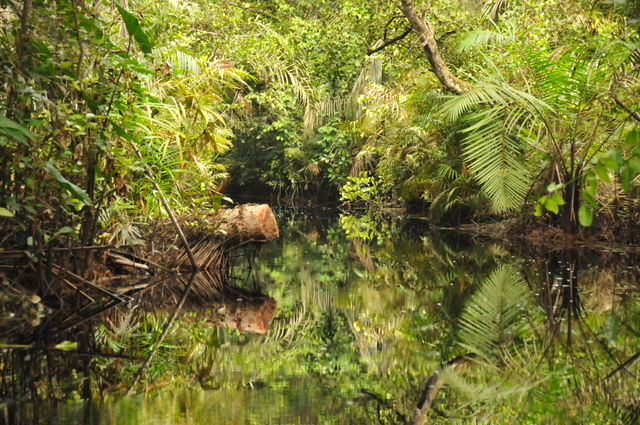 Biz mi nasıl ulaştık? Ortam turistik olduğu için, devlet burayı organize bir hale getirmiş, göle açılan akarsu kollarını temizleyip düzenleyip, ulaşım imkânı sağlamış. Gana’da ücra sayılan “Beyin” adındaki köye araba ile ulaşıp, orada kiraladığımız kano ile göl yüzeyinde 1 saatlik kano yolculuğu yaptık. Şimdi kano derken... En geniş yeri yarım metre, boyu 4 metre kadar bir yekpare ahşap kano. Kapasitesince yolcuyu alıp da yüzmeye başladığında suyun yüzeyiyle bir yükseklikte oluyor. Pek bir derinliği de yok, oturduğumuz kısım, ayaklarımızdan 30 cm kadar yukarıda. Meali şu; kıpırdadığın an sallanmaya başlıyorsun, sallandığında da kano su alıyor. Senin kıpırdamayışın yetmiyor, kanonun içinde senle birlikte oturan diğer kişilerin de sabit oturması gerekiyor :) Kanoya yerleştik; en önde ve arkada birer kürekçi, önce abim, ikinci ben, arkada annem, onun arkasında da –sudan korkan şöförümüz Nicholas (kendisi büyük cesaret gösterdi, canından can verdi bu 1 saatlik seyehatte ama hiç istifini bozmadı :) –